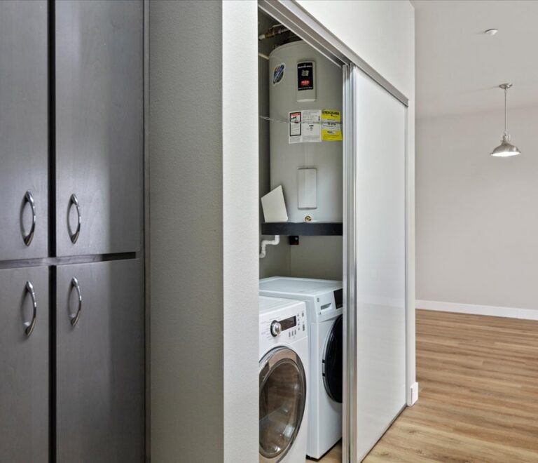 and a discreetly concealed full-size washer and dryer for added convenience.