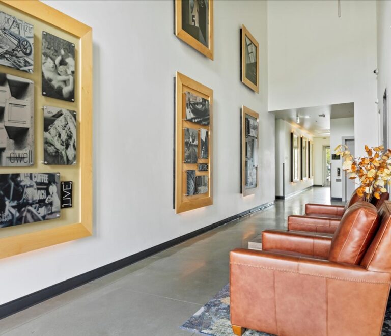 Modern designed 1-bedroom at The 951 featuring 675 sq. ft. to 720 sq. ft. of open, light-filled living space with upscale finishes and thoughtful design details throughout.